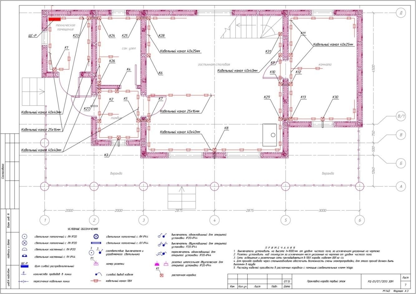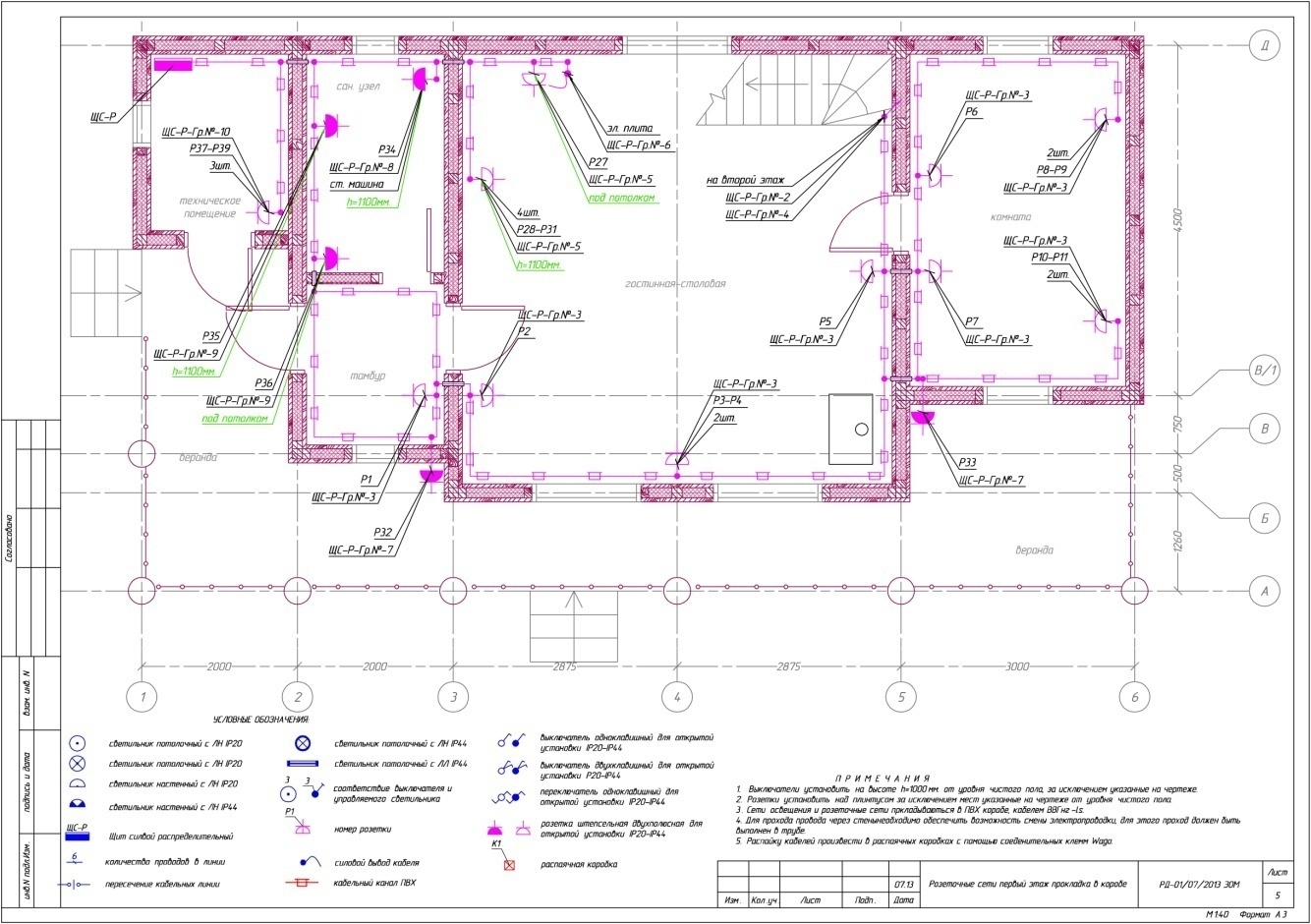 Pour la clarté de tous les calculs effectués, nous portons à votre attention un schéma de principe du câblage électrique dans la maison spécifiée.